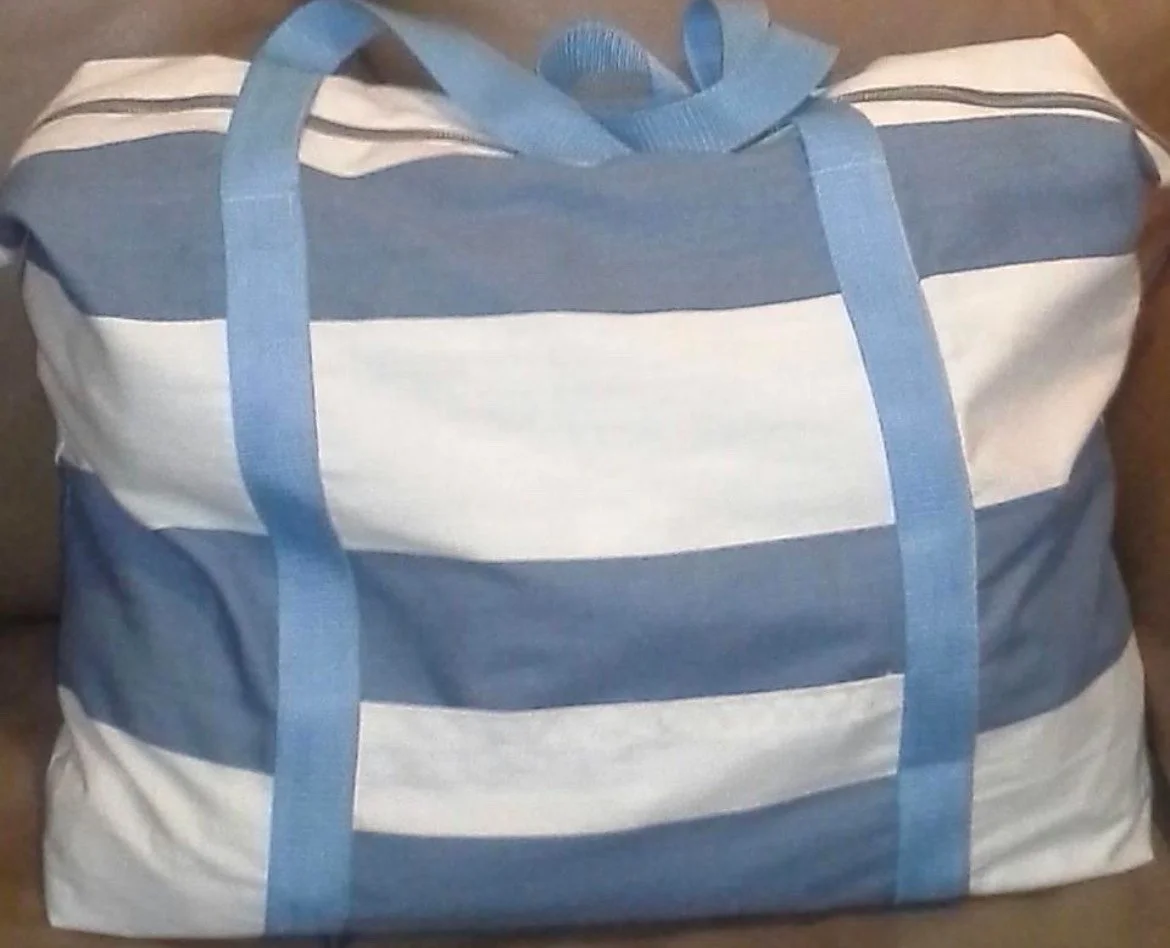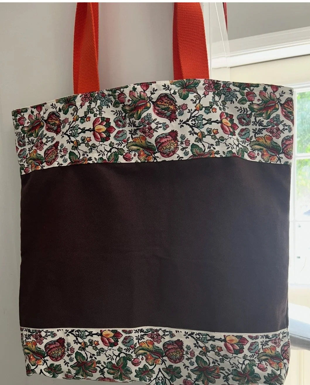 Brown Bag with a Floral Border $30.00 Floral Tote with Orange Trim $40.00 Navy Quilted Tote $80.00 Ralph Lauren Inspired Tote $75.00 Overnight Bag Sale Price: $60.00 Original Price: $110.00 Sale Red Tote with Blue Trim $40.00